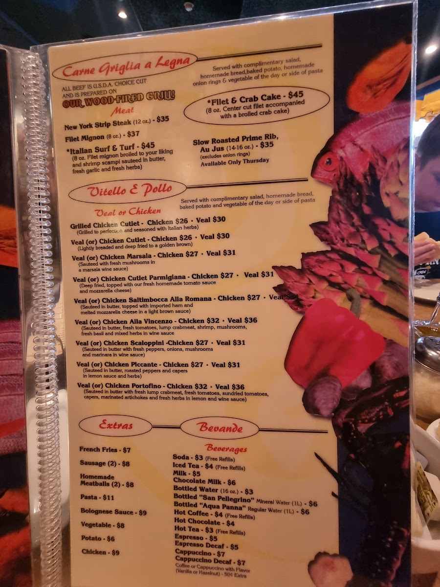 One of the standout features is the Early Bird menu, available from Sunday to Thursday from 4-5 PM, showcasing delectable options such as Chicken Marsala, Penne al Forno, and the delightful Giro D'Italia, which provides a tasting tour of Italian favorites.