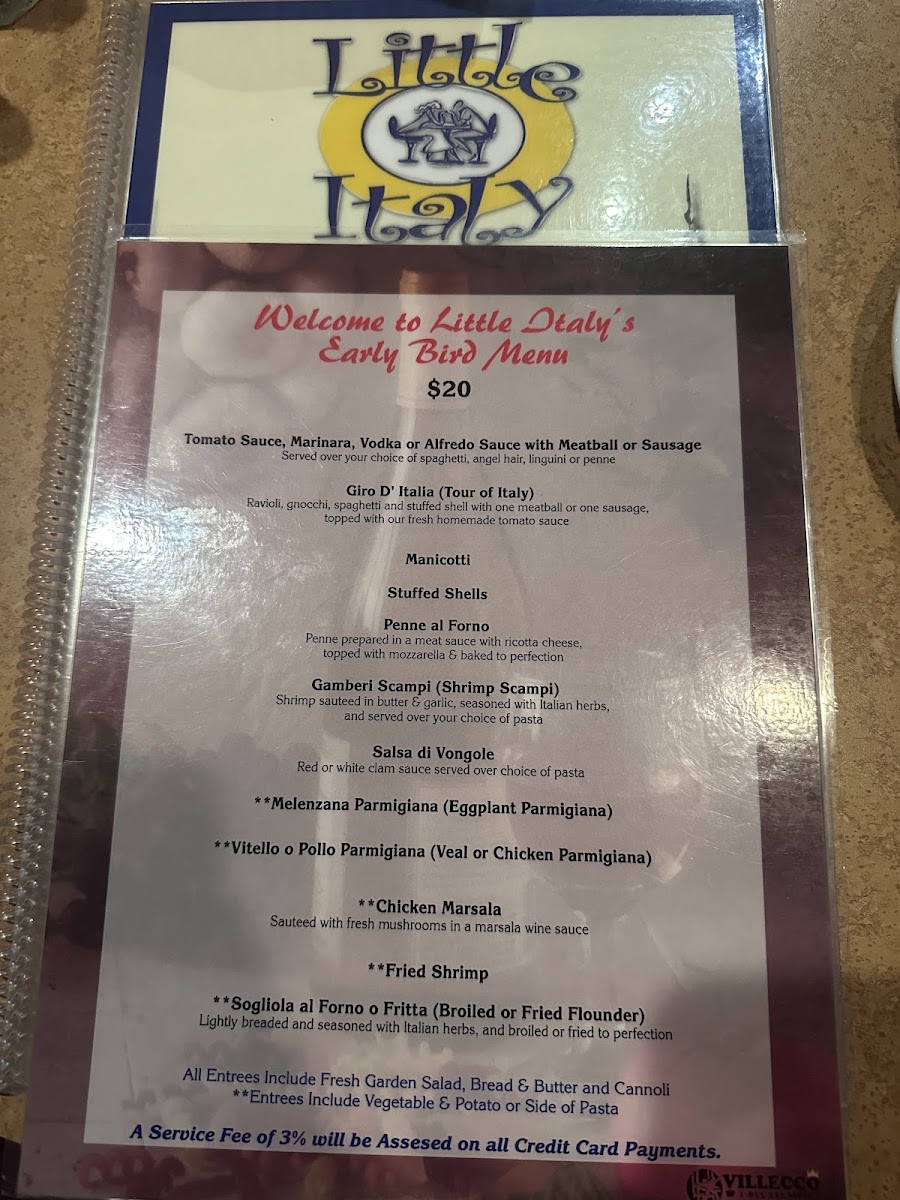 Guests rave about the generous portions and exquisite flavors, whether it's the rich stuffed flounder or the comforting spaghetti with meatballs. With attentive service and a cozy ambiance, Little Italy Restaurant promises a memorable dining experience for all. Don't forget, it's a BYOB spot - perfect for pairing your meal with your favorite wine!